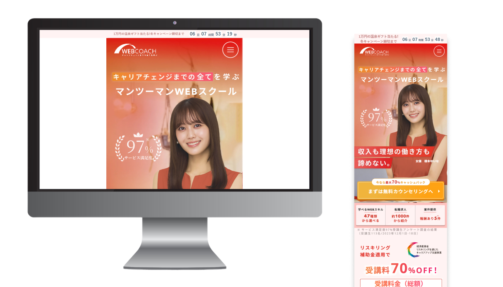 WEBCOACHは、キャリアチェンジまでの全てを学び理想の❝収入と❞働き方、どちらも叶えるためのマンツーマンWEBスクールです。