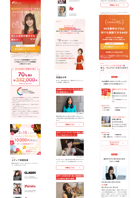 ホームページ制作 2025年8月3日 最終更新日時 : 2025年8月5日 t.ayaka 【製作時間】20時間 【使用ソフト】Wordpress・Photoshop・illustrator・Figma 【担当業務】デザイン・実装 【意識した事】どのデバイスでみても見やすくなるようにレスポンシブデザインを行いました。
